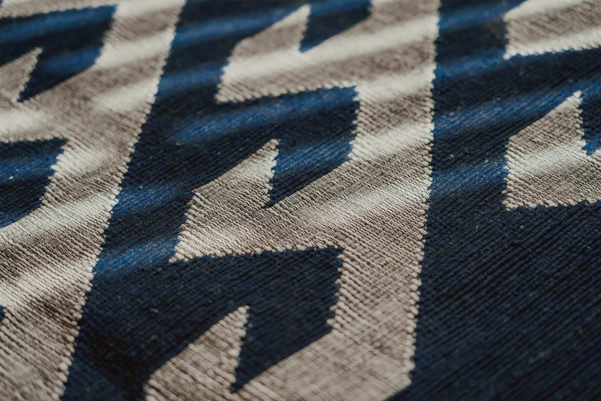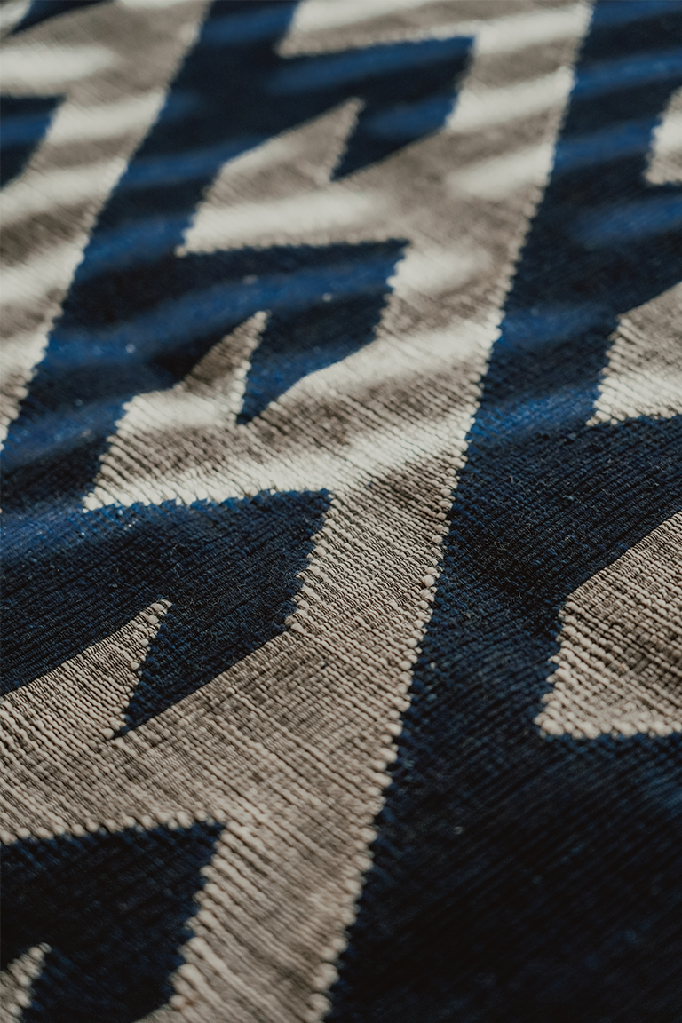 日川 // 植物染手織紋飾雙面披毯/牆毯/地毯/地墊/瑜珈/野餐/露營墊(黑藍)